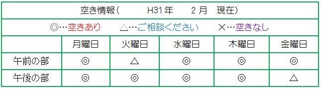 寒い時期でもあるため、室内で運動を行える場所として短期間での通所も可能です。
