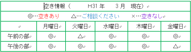 3月の空き情報