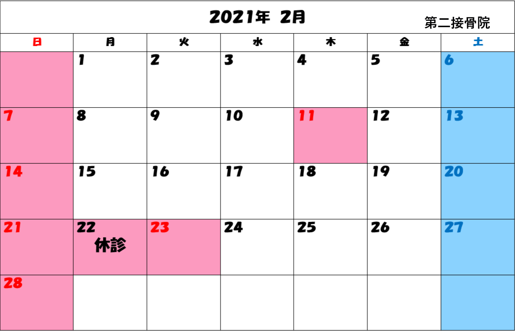 2月の診療について 2021年1月25日 2月の診療日についてお知らせです! 2月22日(月)はスタッフ研修の為お休みをいただきます。 お間違えのないようお願いいたします。 なお、2月7日まで受付時間を18時までとさせていただきます。 ご来院の際は電話にてご予約をお願いいたします。
