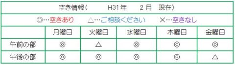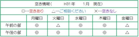 H31.1月の空き情報